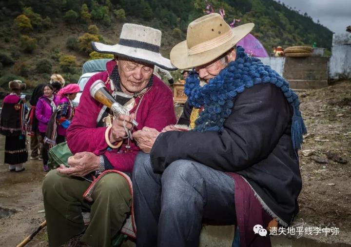 格萨尔王说唱老艺人和“仓巴”(藏族祭祀、风俗礼仪传承人,相当于藏传佛教中的“活佛”)