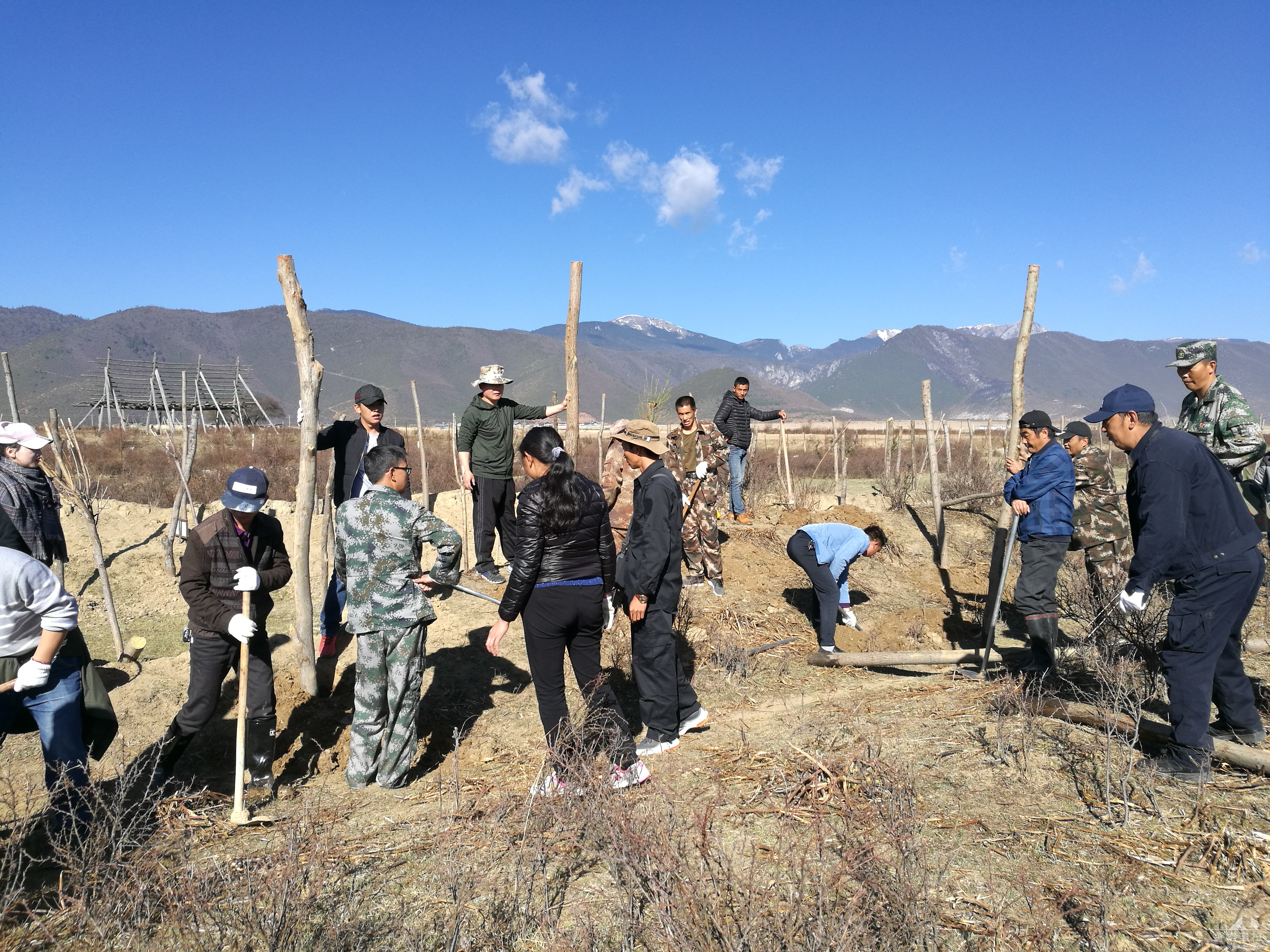 4月24日上午,香格里拉市民政局机关支部在达拉河上段举行义务植树活动。我局机关支部所以党员干部职工参加了活动,通过一上午的劳动,我局广大党员干部职工共栽种30余株树苗。