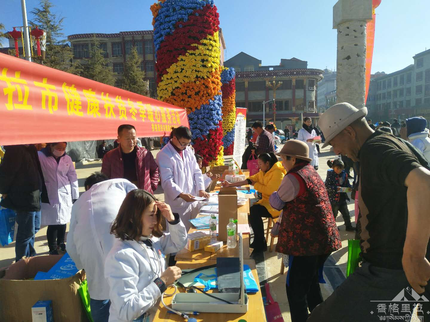 2018年1月1日,正值新年之际,为进一步推动健康扶贫工作的开展,香格里拉市卫计局以2018年“迎康巴艺术节”迪庆香格里拉全面健身元旦穿城跑活动为契机,香格里拉市卫计局、市健康扶贫办公室,监督所、疾控中心、妇幼保健院、社区卫生服务中心、建塘镇卫生院在红太阳广场共同开展了“健康扶贫冬季送温暖活动”。 活动重点以《健康扶贫30条措施》宣传、“健康扶贫冬季暖心活动”、“元旦穿城跑活动”、义诊服务、疾病预防控制、健康宣教等内容相结合。100多人参加了此次活动,开展了《健康扶贫30条措施》宣传帮助群众了解健康扶贫30条措施中惠民政策,开展义诊、流感预防知识、健康素养、饮水卫生等知识宣传,常见病、慢性病、多发病预防、常用药品、中医疗法等相关知识咨询。目的是让更多老百姓特别是建档立卡贫困户知道健康扶贫惠民利民政策,提高政策知晓率,引导老百姓科学合理就医,防止老百姓因病致贫、因病返贫。